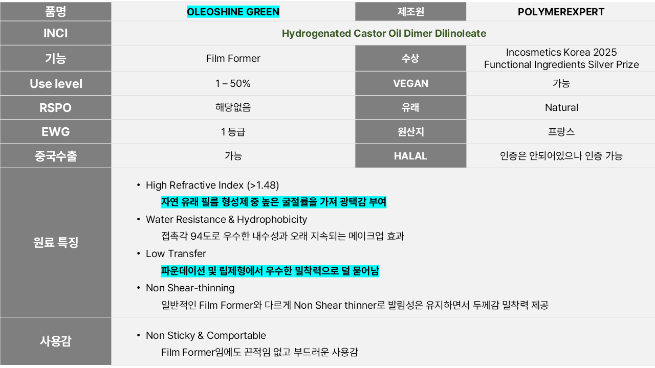 프랑스 폴리머익스퍼스타의 OLEOSHINE GREEN 원료가